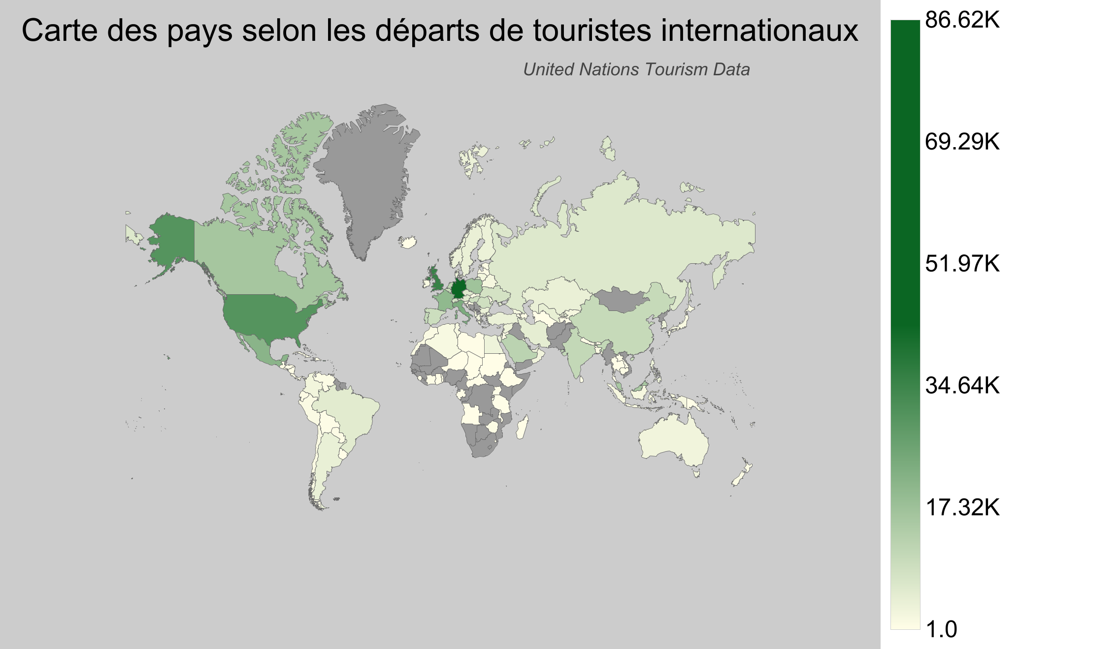 Les départs touristiques internationaux sont une mesure importante de la volonté et de la capacité des résidents à voyager à l'étranger. Ils peuvent indiquer la santé économique d'un pays, le désir de découvrir de nouvelles cultures et l'allocation des jours de vacances. Selon les derniers chiffres disponibles en 2023 par la base de données du tourisme des Nations Unies, ces statistiques fournissent une perspective fascinante sur la mobilité mondiale.
